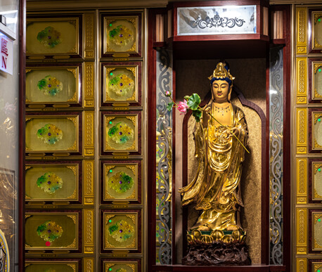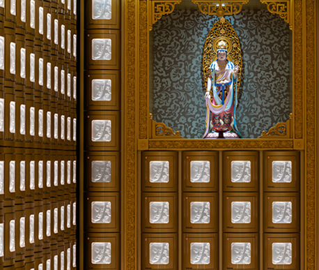 理念:前後殿是地藏王菩薩護持外,四個窗戶亦有佛祖護持,特聘新加坡設計師精心規劃,內部空間寬敞明亮、高雅尊貴,極富創意設計與藝術的展現。